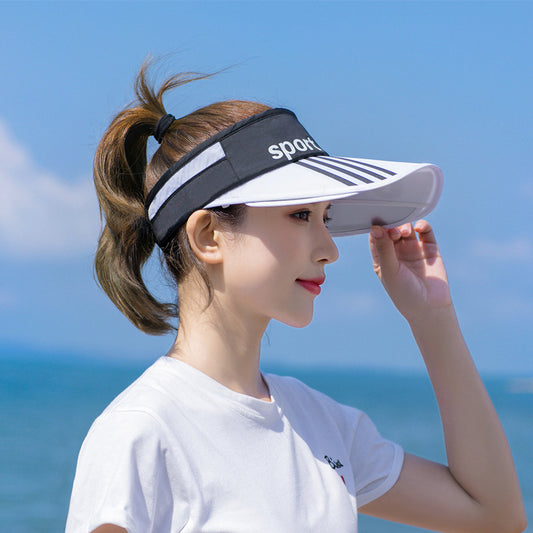 Retractable pull board hollow top women sun hat